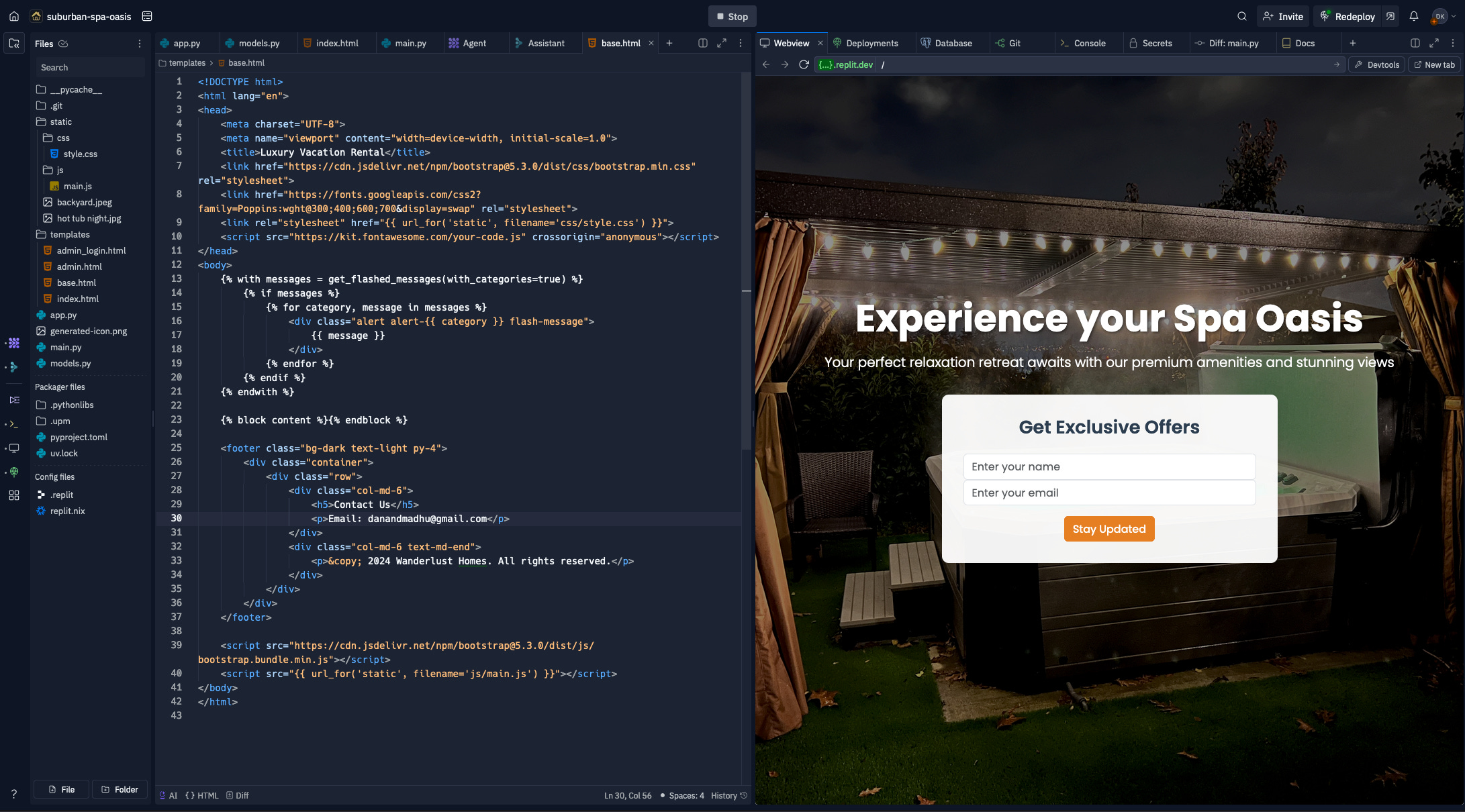 The AI Agent turned out to be the star of the show. I started by describing my idea—a direct booking site for my Airbnb—and it helped me break that idea into manageable tasks. Within seconds, I had a basic site up and running, complete with a simple UI and database integration.